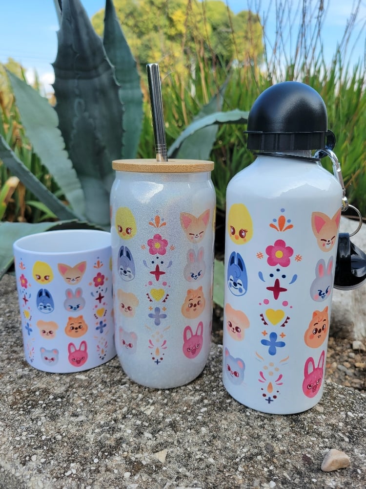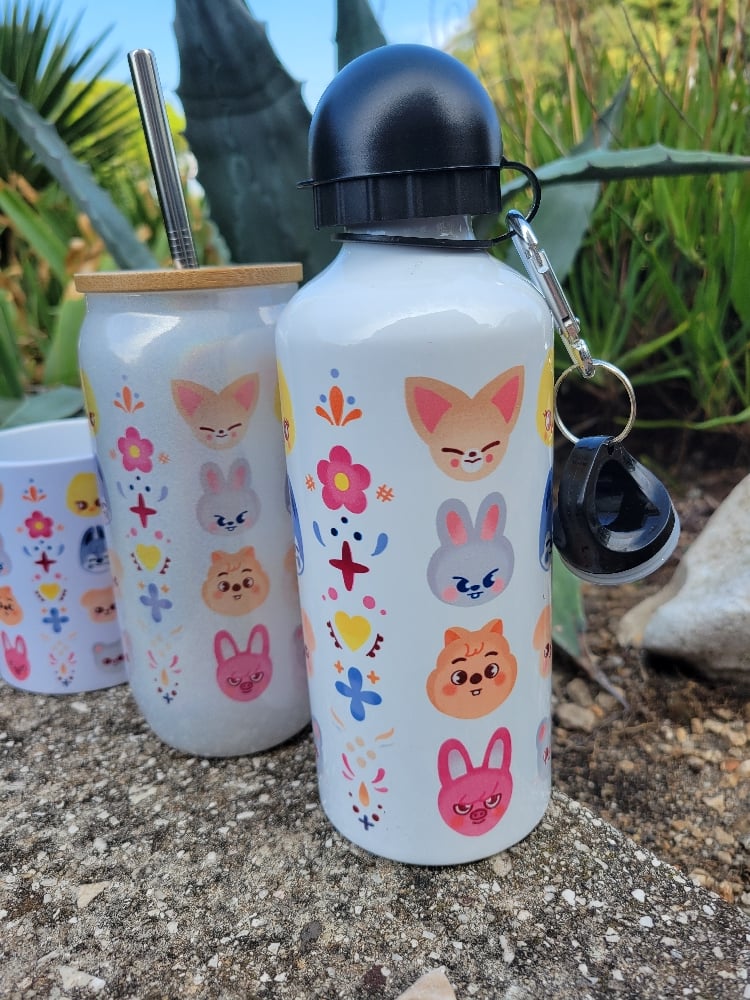🌸Gobelet en verre pailleté, couvercle Bambou et paille inox. 500ml.